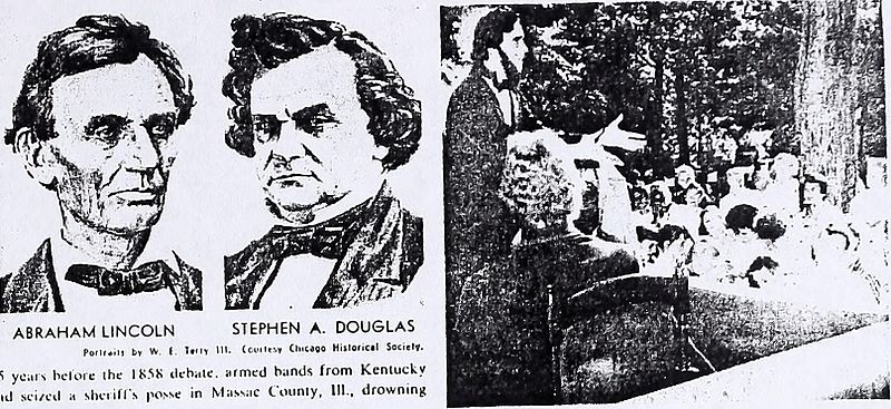 358. The Lincoln and Douglas Debates, 1858.--The question of the reëlection of Douglas to the Senate now came before the people of Illinois. Abraham Lincoln stepped forward to contest the election with him. "A house divided against itself cannot stand," said Lincoln. "This government cannot endure half slave and half free.... It will become all one thing or all the other." He challenged Douglas to debate the issues with him before the people, and Douglas accepted the challenge. Seven joint debates were held in the presence of immense crowds. Lincoln forced Douglas to defend the doctrine of "popular sovereignty." This Douglas did by declaring that the legislatures of the territories could make laws hostile to slavery. This idea, of course, was opposed to the Dred Scott decision. Douglas won the election and was returned to the Senate. But Lincoln had made a national reputation.