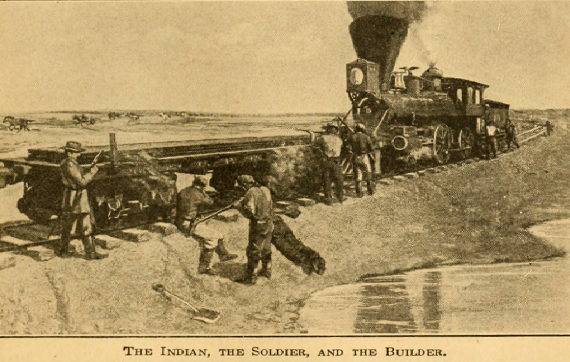 During the seven years spent in building this railroad many difficulties were met and conquered. Most of the country along the line was without timber, fuel, or any of the necessary supplies. The materials for construction were brought up the Missouri River by steamboat to Kansas City. From this point they were hauled by train over the new railroad as far as it was completed. The Indians opposed the work because it meant the westward movement of civilization and the settling of their hunting grounds. They were a constant source of danger to the