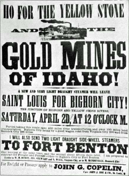 "Ho For The Yellow Stone" Reproduced by permission of the Montana Historical Society, from the original handbill in its possession.