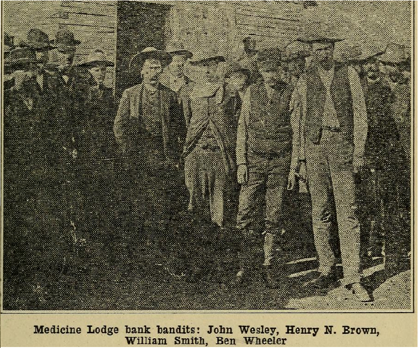 They started toward town, and about half way they met C. T. Riggs, who was sheriff, leading a big posse of men. The sheriff at once took charge of the robbers and they were escorted by the whole crowd back to Medicine Lodge, where they were locked in the jail.