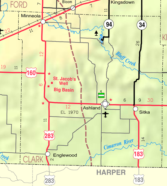 Clark County, originally a part of Ford County, is located in the southwest portion of Kansas. The County is bordered on the south by the State of Oklahoma; Ford County to the North; Meade County to the West and Comanche County and Kiowa County to the east. There is approximately 960 square miles in Clark County. Source: Clark County Website