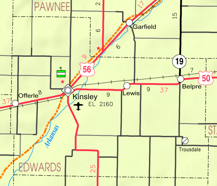 The Chicago Workingmen's Town Company founded a nearby town in 1872, naming it "Petersburg" for T. J.. Peter, a director of the Santa Fe Railroad, which was then building westward. In 1874 the Kansas Legislature defined Edwards County and it was named for W. C. Edwards, who built the first brick block, which became the center around which the county was built.