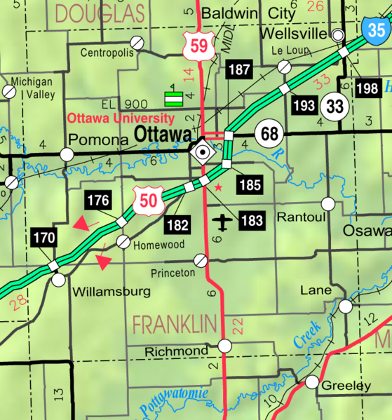 Franklin County, Kansas was established in 1855 and named in honor of the legendary Benjamin Franklin. It is located in the second tier of counties west from Missouri, and also in the second tier south from the Kansas River. It is bounded on the north by Douglas County, on the east by Miami, on the south by Anderson, and on the west by Coffey and Osage counties.