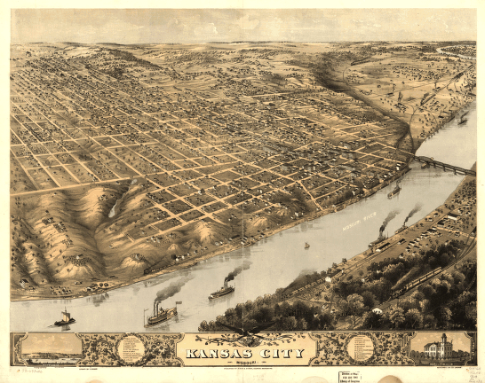 At the close of the Civil War in 1865, during which Kansas City, in common with all the border towns of Missouri and Kansas, was disturbed by the conflict, a tremendous immigration began to flow westward through the city. Railroad enterprises in Kansas and beyond were opening up the country for settlement, and the families of those who had lately been engaged in war rushed westward to take up the vacant lands offered them.