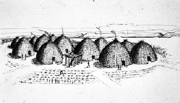 From here the general sent out to explore the country,[173] and they found another settlement four days from there[174] . . . The country was well inhabited, and they had plenty of kidney beans and prunes like those of Castile and tall vineyards. These village settlements extended for three days. This was called Cona. Some Teyas,[175] as these people are called, went with the army from here and traveled as far as the end of the other settlements with their packs of dogs and women and children, and then they gave them guides to proceed to a large ravine where the army was. They did not let these guides speak with the Turk, and did not receive the same statements from these as they had from the others. These said that Quivira was toward the north and that we would not find any good road thither. After this, they began to believe Ysopete. The ravine which the army had now reached was a league-wide from one side to the other, with a little bit of a river at the bottom, and there were many groves of mulberry trees near it, and rosebushes with the same sort of fruit that they have in France. They made verjuice from the unripe grapes at this ravine, although there were ripe ones.[176] There were walnuts and the same kind of fowls as in New Spain, and large quantities of prunes like those of Castile. During this journey, a Teya was seen to shoot a bull right through both shoulders with an arrow, which would be a good shot for a musket. These people are very intelligent; the women are well made and modest. They cover their whole body. They wear shoes and buskins made of tanned skin. The women wear cloaks over their small under petticoats, with sleeves gathered up at the shoulders, all of skin, and some wore something like little sanbenitos[177] with a fringe, which reached halfway down the thigh over the petticoat.