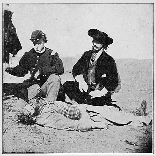 There was hardly a man in this ill-fated, outfit who did not suffer the loss of a hand, a foot, or a limb. The men were camped in Five Mile Hollow, five miles from Hays City, and when news of the affair reached town next day, all the citizens turned out to search for the missing men, gathering them up and taking them to the hospital at Hays City. Some of the bewildered men wandered to my road-ranch, where Billy Reynolds was in charge, and there found shelter and protection from the storm.
